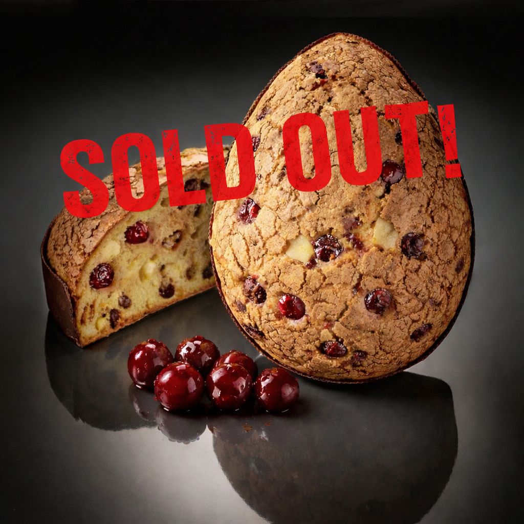 Soft wheat flour, Candied black cherry (Black cherries, Sucrose, Glucose syrup), Butter, Egg yolk cat. A 100% Italian, Granulated sugar, white chocolate chips (Granulated sugar, Milk powder, Cocoa butter, Skimmed milk powder, Emulsifier: soy lecithin, Natural vanilla flavoring), Orange paste (Navel orange peel, Sucrose), Water, Live sourdough starter (soft wheat flour, Water), Egg white, Almond powder, Fine corn flour, Orange honey, Salt, Sunflower oil, Madagascar Bourbon vanilla pod